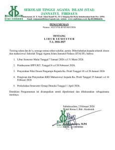 PENGUMUMAN Nomor:022/yys-jf/STAI/I/2026 Tentang: Libur Semester Ganjil T.A. 2025/2026